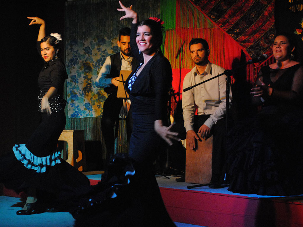 Como una especie de banquete, el espectáculo estuvo divido en cuatro tiempos: entradas, especialidades, las tapas y los postres; en cada una de ellas, el cante y el toque de la guitarra cobraron vida en los cuerpos de las bailaoras Citlalli Iglesias, Laura Yoko y Soledad Sánchez quienes desde su llegada al escenario atraparon las miradas con los hermosos, sensuales y dramáticos vestidos que las cobijaban.