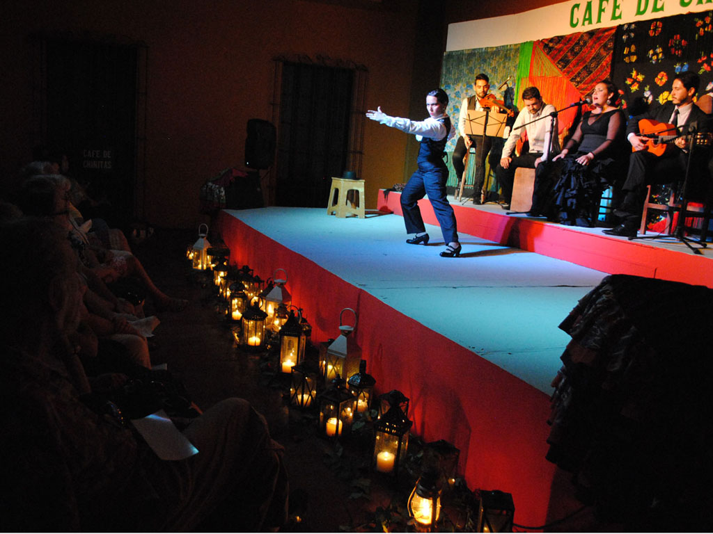 La producción impecable del evento sumergió a los espectadores patasaladas y extranjeros en el ambiente del “Café de Chinitas”, arrabal y catedral del arte flamenco que tuvo su apogeo en 1930 en Málaga, España. La música estuvo en manos de Manuel Rosete y Darío Ávila en las guitarras, Johann Abitia en el cajón, Víctor Osuna en el violín, y en el cante apasionado de Ana Elena Morales.