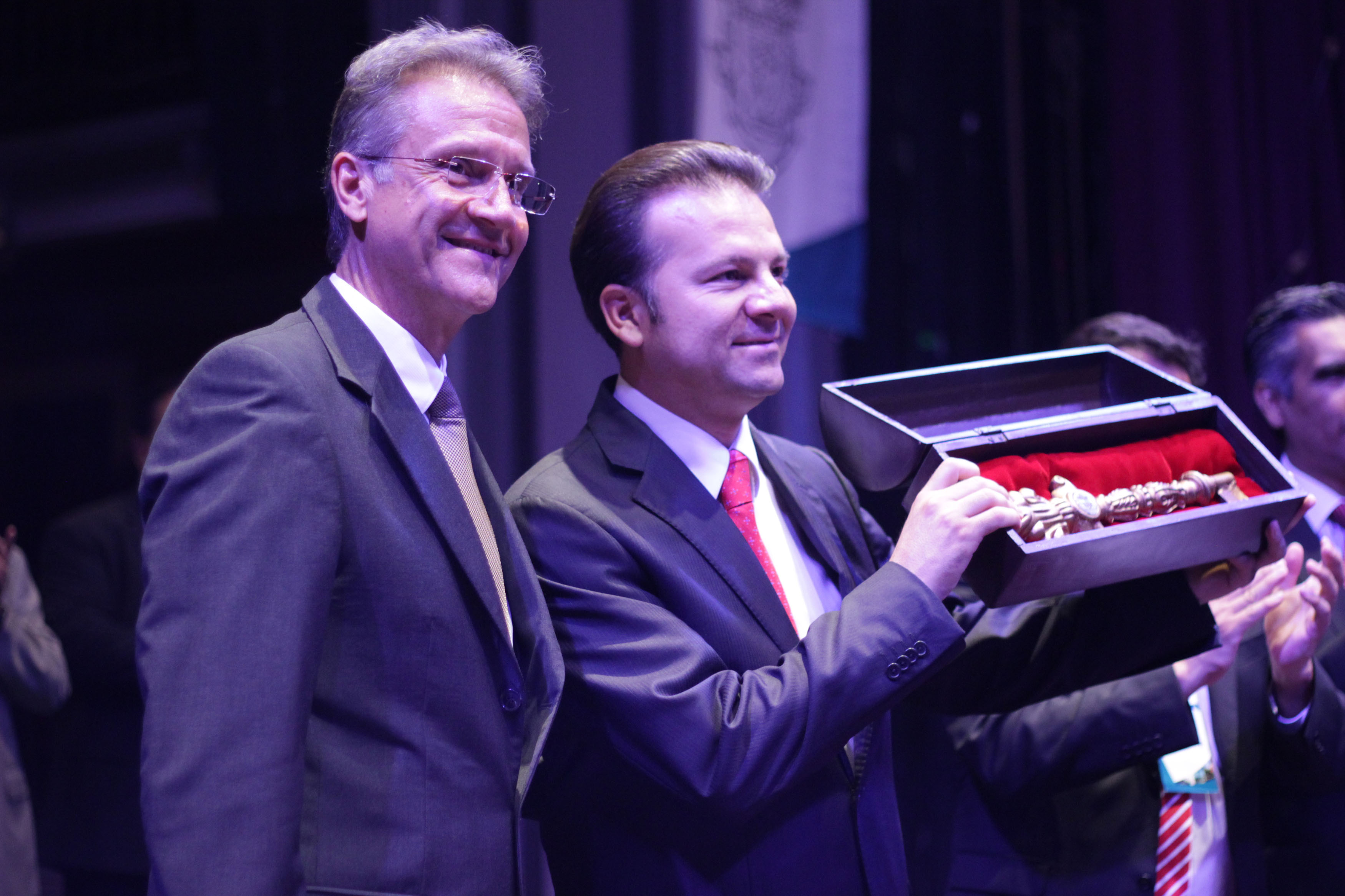 Tras llevar a cabo la firma del protocolo por parte de los integrantes del Honorable Cuerpo de Regidores y empresarios de cada municipio, el Presidente Municipal de Mazatlán entregó las llaves de la ciudad a su homologo duranguense como muestra de fraternidad hacia la ahora ciudad hermana.