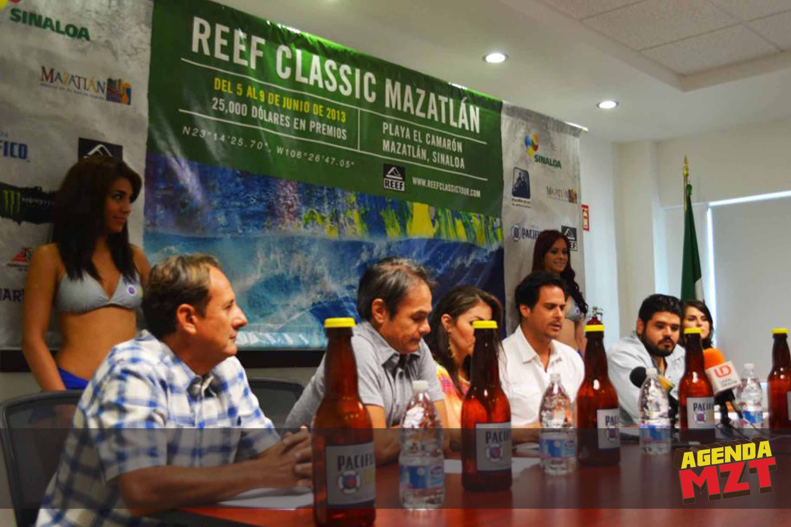 El día de hoy se llevó a cabo la rueda de prensa donde se anuncia a Mazatlán como sede El Reef Clássic tour 2013, México será por primera ves sede de este torneo profesional con 10 años de historia en países como Argentina, Uruguay, Costa Rica, Panamá, Perú, Chile entre otros, este clásico torneo latinoamericano se estacionará en la Playa del Camarón Sábalo del 05 al 09 de Junio del 2013.